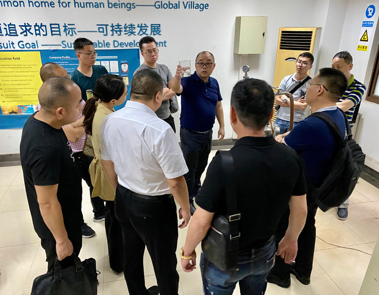 2020年7月15日上午,臺州海事局一行12人來我司調(diào)研“探索船舶污染物接收運營服務(wù)”項目,在碧盾公司總經(jīng)理甘澍霖先生的帶領(lǐng)下參觀考察了碧盾公司海上溢油回收實驗室與阻截式油水分離技術(shù)演示,雙方就技術(shù)原理、技術(shù)先進性、技術(shù)穩(wěn)定性、產(chǎn)品推廣現(xiàn)狀、國內(nèi)外市場前景等方面展開了充分的溝通交流。各位領(lǐng)導(dǎo)對我司的膜技術(shù)給予了充分肯定,并表示將積極安排市場對接,以期實現(xiàn)企業(yè)與政府雙方社會與經(jīng)濟效益的共贏。